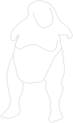 Unlike other Creepy Mutants such as Virginias or Armsies, Cowmen have facial features and don't appear to be formed by multiple bodies though they are also taller, wider, and stronger than Mutants. Cowmen can be said to resemble a grotesquely obese human or an early human fetus as evidenced by the distorted, smoothed out facial features with tiny arms, a protruding stomach, the lack of genitalia, and the space between the legs.